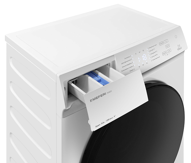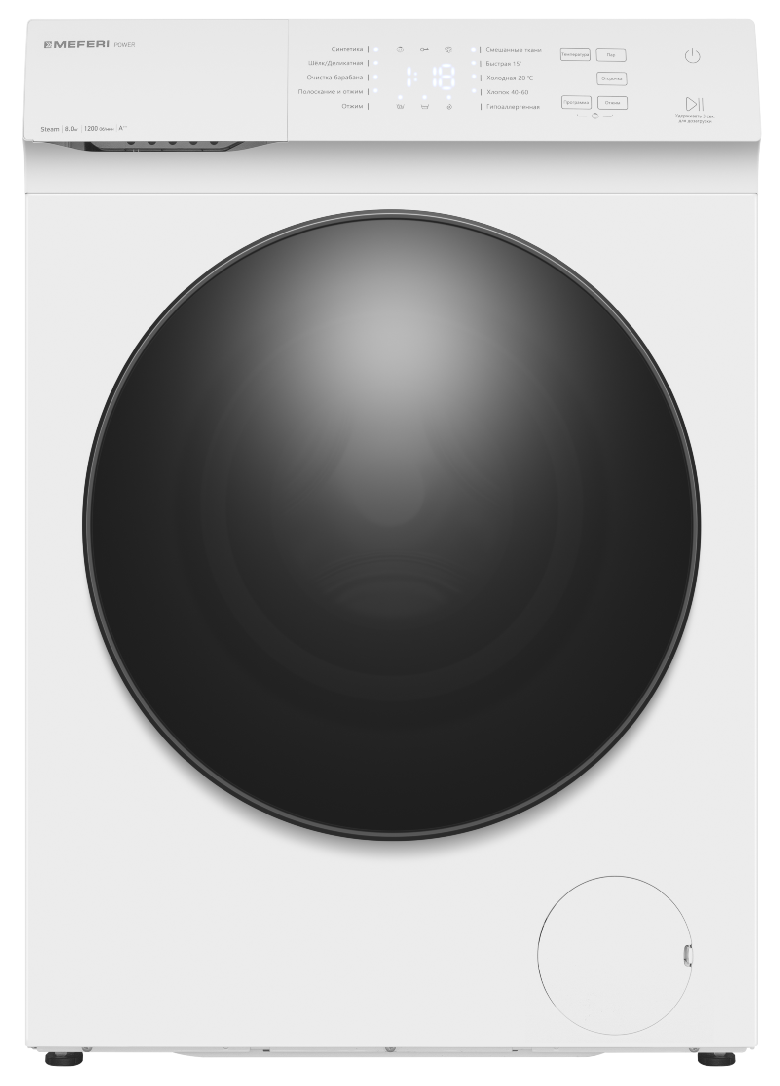 Стиральная машина с паром узкая отдельностоящая белая, глубина 38,5 см, загрузка 8 кг MEFERI MFW081210WH POWER |