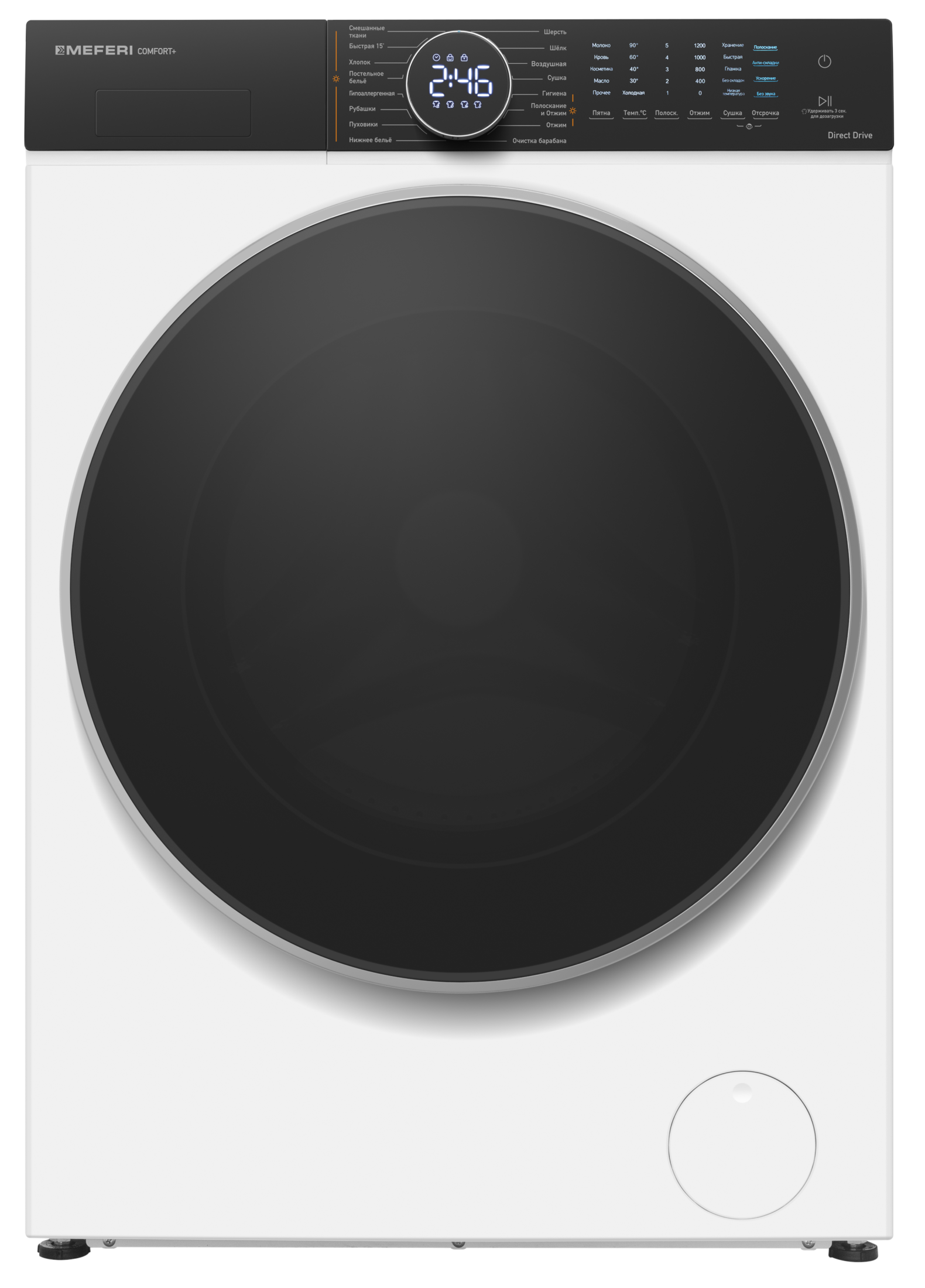 Стиральная машина с сушкой 2 в 1, инвертором и паром отдельностоящая белая, с прямым приводом, загрузка 10 кг стирка, 7 кг сушка MEFERI MFWD1071216WH COMFORT PLUS |