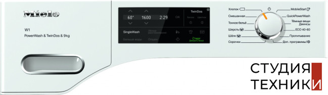 Управление:- Элементы управления: поворотный переключатель- Вид панели управления: наклонная- Дисплей: ComfortSensor белый- Индикация завершения программы на дисплее и в мобильном приложении- WiFiConnect- Отсрочка старта до 24 часов- Индикация остаточного времени- Индикация дозировки моющего средства- Зуммер