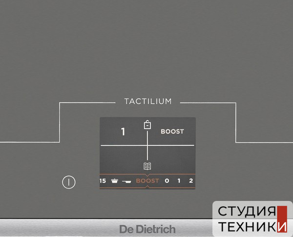 Управление:- Электронное управление- Сенсорный экран Tactilium- Таймер до 99 минут (возможно программировать все зоны одновременно) - Расположение элементов управления: фронтальное - Переключатели сенсорные - Индикатор остаточного тепла - Независимый таймер с автоотключением для каждой конфорки- Индикация уровня мощности: 16 уровней мощности- 3 элемента управления прямого доступа, включая Boost: простым нажатием на специальную кнопку, индукционные варочные панели De Dietrich обеспечивают мгновенный доступ к настройкам мощности для жарки, томления или поддержания блюд в нагретом состоянии.