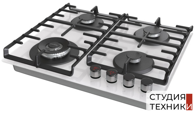 Общие характеристики:- Тип: газовая- Установка: независимая- Материал: закаленное стекло- Цвет: белый- Цвет фурнитуры: черный- Количество зон нагрева: 4 шт- Размеры (ВхШхГ): 13.6х60х52 см- Размеры ниши для встраивания (ВхШхГ): 10х56х49 см