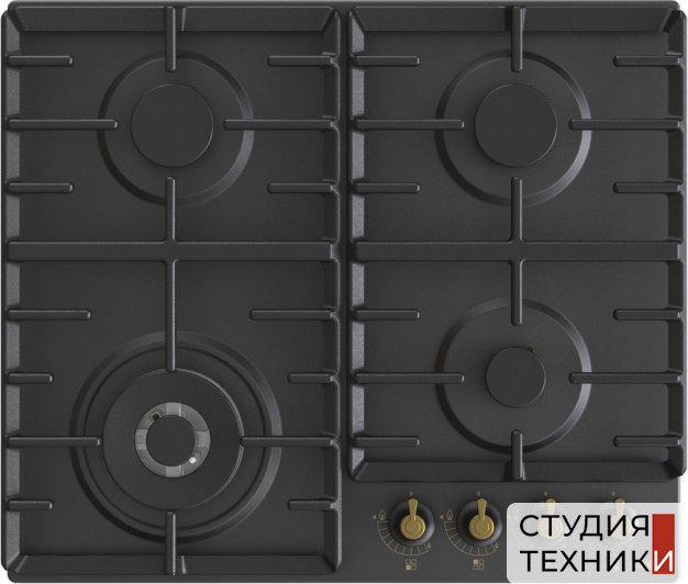 Общие характеристики:- Тип: газовая- Установка: независимая- Материал: окрашенная эмаль- Цвет: черный- Цвет фурнитуры: бронза- Количество зон нагрева: 4 шт- Размеры (ВхШхГ): 13х60х52 см- Размеры ниши для встраивания (ВхШхГ): 10х56х49 см