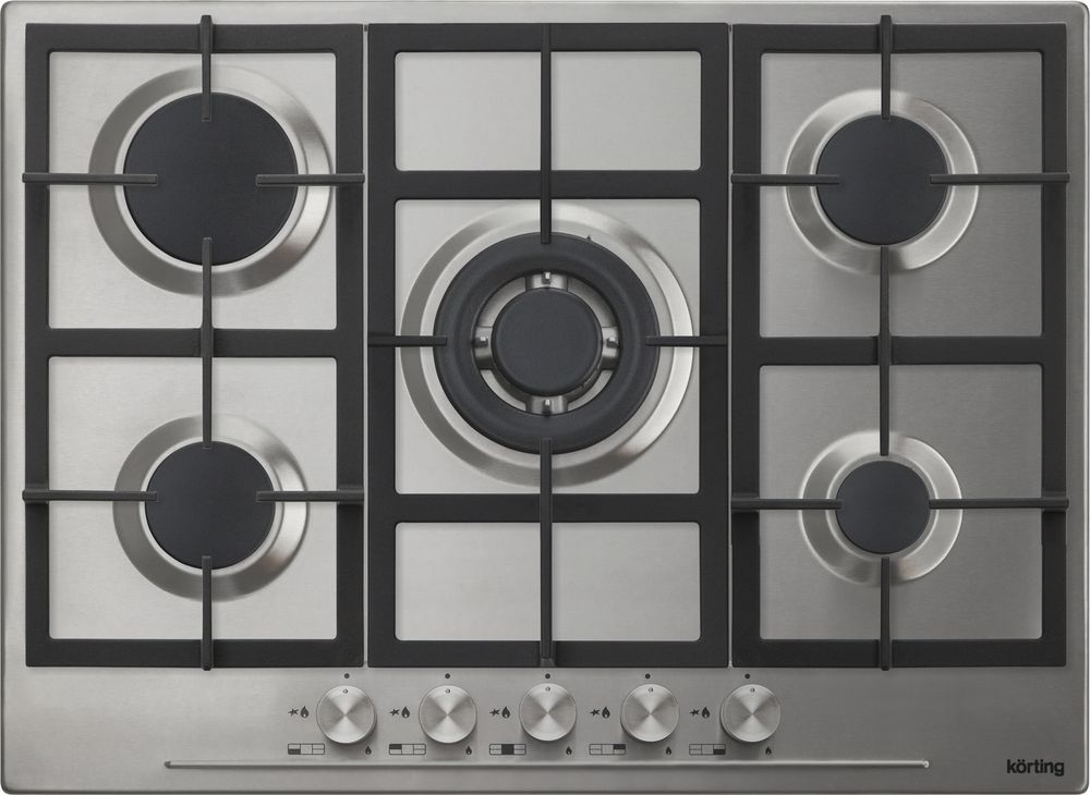 Технические характеристики зон нагрева:- Тип конфорок: 5 газовые- Центральная: 3,8 кВт- Задняя левая конфорка: 3 кВт- Передняя левая конфорка: 1,75 кВт- Задняя правая конфорка: 1,75 кВт- Передняя правая конфорка: 1 кВт- Сверхмощная конфорка WOK: приготовление блюд становится еще более быстрым, а нагрев посуды равномерным. Korting установил в свои модели сверхмощную конфорку с тремя рядами пламени для более быстрого приготовления. Экономьте свое время с Korting. К тому же сверхмощная конфорка WOK поможет вам приготовить изысканные блюда восточной кухни