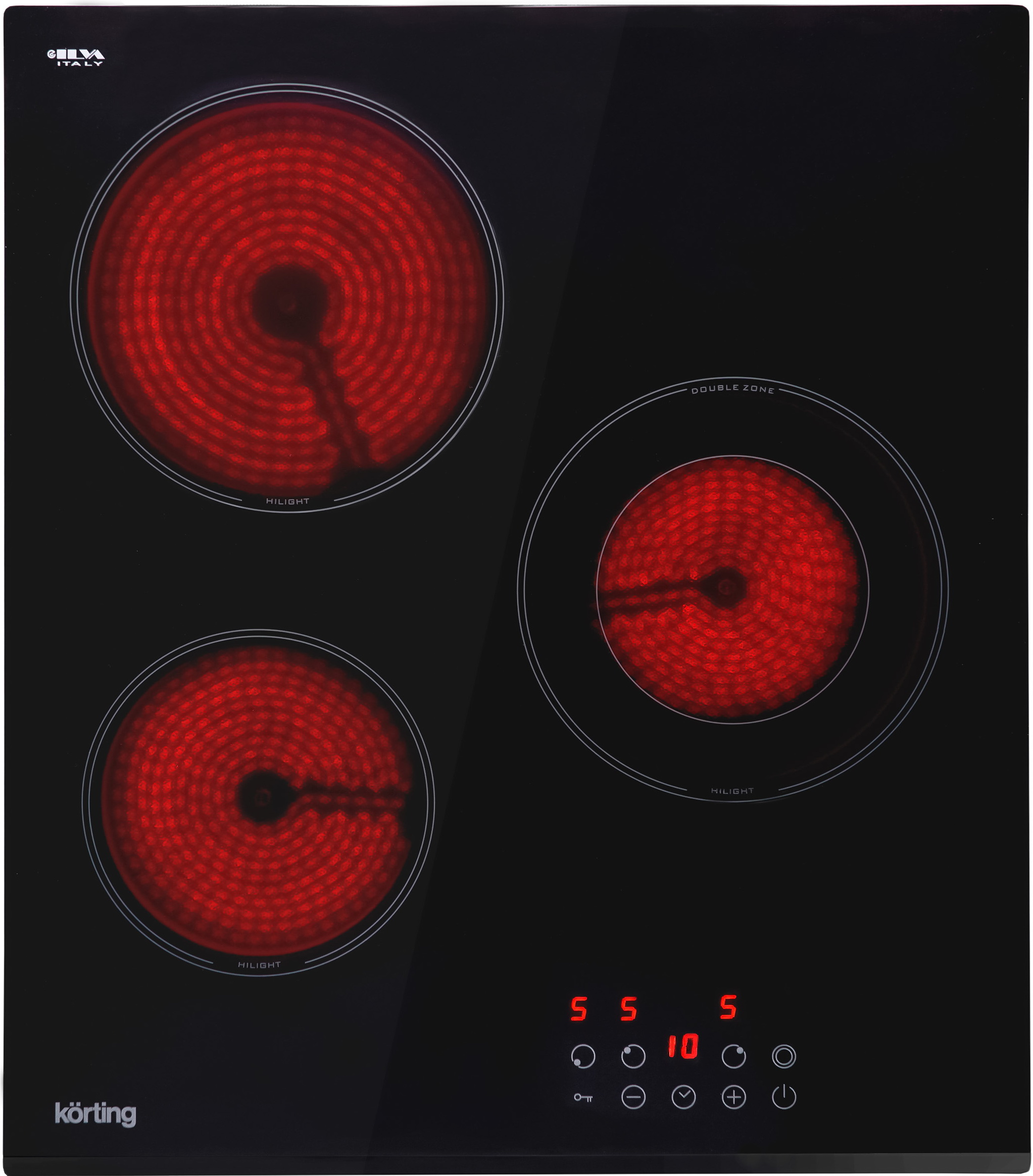 Безопасность:- Индикация остаточного тепла: световой индикатор в варочных поверхностях Korting горит, пока температура соответствующего нагревательного поля не понизится до 60°С. Это можно также использовать для подогрева блюд при уже выключенной варочной панели, что позволяет экономить электроэнергию, а так же сообщит когда можно приступать к очистки поверхности- Автоматическое защитное отключение: специальная функция, которая автоматически отключает варочную панель в случае, если пользователь забыл это сделать сам. Время экстренного отключения панели или включенных конфорок зависит от заранее выбранного шага нагрева. Можно быть полностью уверенным в безопасности приготовления- Блокировка от детей