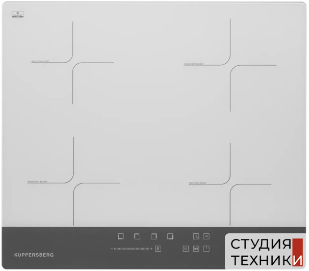 Управление:- Тип управления: сенсорное- Регуляторы мощности: сенсорные слайдеры- Расположение элементов управления: фронтальное- Регулировка мощности: 9-ступенчатая- Цифровой дисплей- Таймер до 99 минут- Таймер конфорок с отключением- Индикация включения- Индикация остаточного тепла для всех зон