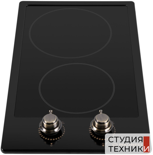 Общие характеристики:- Тип: электрическая Hi-Light- Материал: стеклокерамика- Установка: независимая- Цвет: черный- Цвет фурнитуры: матовое золото- Рамка: без рамки- Количество зон нагрева: 2 шт- Потребляемая мощность: 2.9 кВт- Размеры (ВхШхГ): 7.5х29х51 см