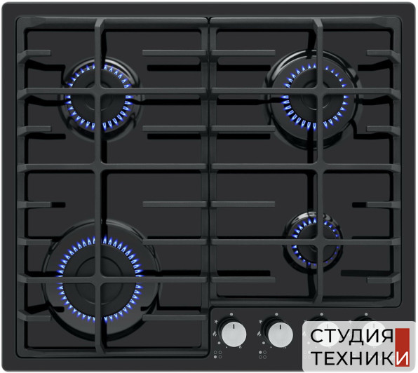 Общие характеристики:- Тип: газовая- Материал: металл- Установка: независимая- Цвет: черный- Цвет фурнитуры: нержавеющая сталь- Рамка: без рамки- Количество зон нагрева: 4 шт- Потребляемая мощность: 7,0 кВт- Размеры (ВхШхГ): 5.1х59х51.5 см- Размеры ниши для встраивания (ШхГ): 49х56 см