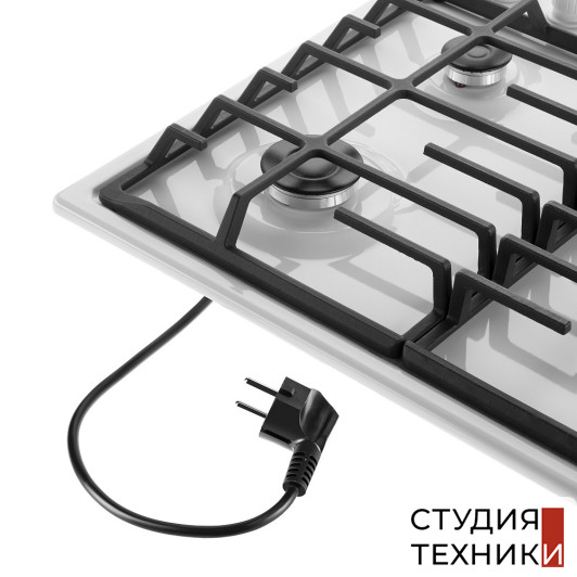 Дополнительные характеристики:- Тип газа: природный/LPG (бутан, пропан)- Чугунные решетки- Сплошное крестообразное соединение над всеми конфорками (позволяет использовать посуду маленького диаметра)-