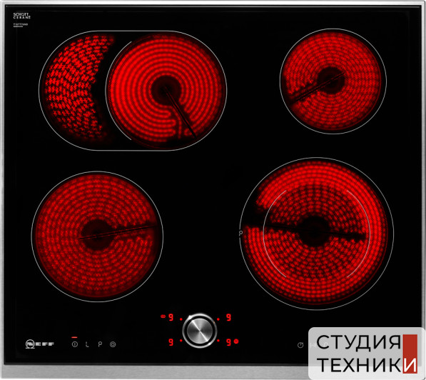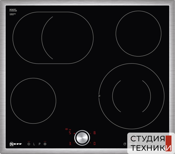 Электрическая варочная поверхность Neff T16BT76N0 Общие характеристики: - Тип: электрическая- Материал: стеклокерамика- Установка: независимая- Цвет: черный - Количество зон нагрева: 4 шт- Рамка: металл со всех сторон- Общая мощность конфорок: 7,5 кВт - Размеры (ВхШхГ): 4.8х58.3х51.3 см - Размеры для встраивания (ШхГ): 56х49-50 см Управление, функции: - Переключатели: сенсорные- Управление TwistPad - 17 ступеней мощности - Таймер: прямого отсчета, с отключением, без отключения (со звуковым сигналом) - Индикация включения Конфорка: - Всего Hi-Light конфорок: 4 - Кол-во конфорок с овальной зоной расширения: 1 - Кол-во конфорок с круглой зоной расширения: 1 - Мощность задней правой конфорки: 1200 Вт, 145 мм - Мощность передней правой конфорки: 1200/ 3000 Вт, 180/260 мм - Мощность задней левой конфорки: 1800/2600 Вт, 170/265 мм - Мощность передней левой конфорки: 1200 Вт, 145 мм Дополнительная информация: - Функция PotBoost: обеспечивается мгновенный максимальный нагрев и одновременно предотвращает выкипание, отключаясь раньше, чем происходит нагрев (для передней правой конфорки)- Cleaning-пауза - кратковременная блокировка панели на 30 секунд- Функция поддержания тепла для всех зон нагрева - Дисплей индикации энергопотребления - Главный выключатель - Минимальная толщина столешницы 20 мм Безопасность: - Термоэлектрическая защита от утечки газа- Индикатор остаточного тепла Страна производителя:- Германия