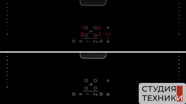 Управление:- Управление: сенсорные переключатели TouchControl- Расположение элементов управления: фронтальное- Таймер со звуковым сигналом и отключением и без отключения- Индикация включения- 17 уровней мощности- Режим работы вытяжки: отвод/рециркуляция- 3 уровня мощности вентилятора вытяжки- Автоматическое отключение интервального режима вытяжки- Автоматическое включение вытяжки при использовании зоны приготовления