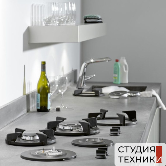 Технические характеристики зон нагрева:- Тип конфорок: 4 газовые- 1 небольшая конфорка: 0,3-2 кВт- 1 средняя горелка: 0,2-3 кВт- 2х комбинированные горелки WOK/Simmer: (0,2-5 кВт)