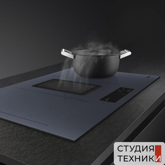 Общие характеристики:- Вид: индукционная варочная панель с вытяжкой- Способ подключения: электрическая- Установка: независимая- Материал: стеклокерамика- Цвет: серый- Количество зон нагрева: 4 шт - Рамка: прямой край- Мощность подключения: 7,6 кВт- Размеры (ВхШхГ): 4х83х52 см- Размеры для встраивания (ШхГ): 76.5-76.6х48.2-48.3 см