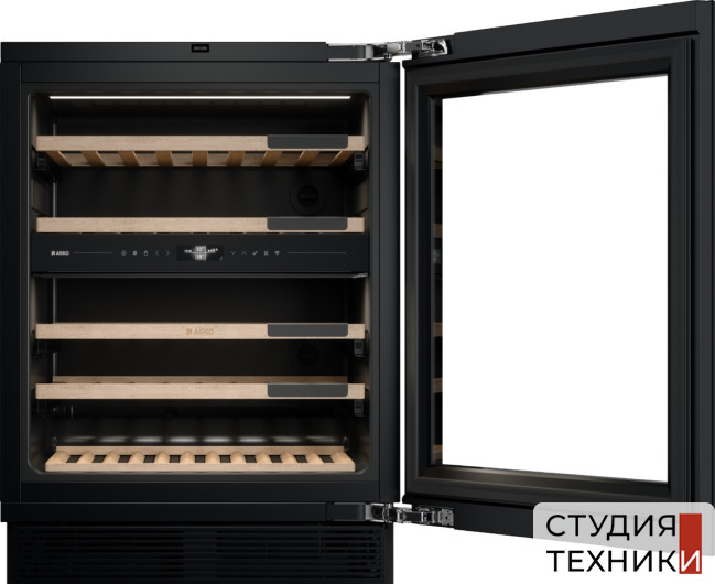 - Вид: винный холодильник- Расположение: встраиваемый- Дизайн-линейка: Elements- Количество температурных зон: 2- Тип охлаждения: компрессорное- Система размораживания: автоматическая- Количество полок: 3 шт - Количество бутылок: 38 шт- Общий полезный объем: 120 л - Цвет: черный - Уровень шума: 35 дБ- Мощность подключения: 1,1 кВт- Класс энергетической эффективности: A+- Годовое потребление энергии: 111 кВтч/год- Габариты (ВхШхГ): 82х59.5х57,3 см- Габариты ниши для встраивания (ВхШхГ): 82-87х60х58 см Управление, функции:- Сенсорное управление- Дисплей: цифровой- Регулировка теплоты и яркости освещения- Регулировка теплоты освещения- Автоматическое включение подсветки при открытии двери- Управление через приложение ConnectLife- Подключение к базе данных Vivino- Режим «Шаббат»