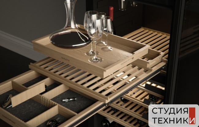 Холодильное отделение:- Количеств направляющих для размещения бокалов: 2- Светодиодное освещение на потолке - Светодиодное освещение под перегородкой - RGB подсветка - Автоматическая активация внутреннего освещения при приближении или открывании