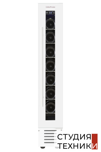 ВИННЫЙ ШКАФ Cellar Private CP007WОбщие характеристики:- Тип: встраиваемый/отдельностоящий- Вид: однозонный- Температурная зона: 5-20 С- Количество дверей: 1- Материал корпуса: нержавеющая сталь- Вместимость бутылок (0.75 л): 7 шт.- Цвет: белый- Уровень шума: 44 дБ- Потребляемая энергия в год: 87.6 кВт/год- Система охлаждения: компрессорная - Разморозка: автоматическая- Размеры (ВхШхГ): 86.5x15x47.5 см- Размеры ниши (ВхШхГ): 87x16x51 смУправление:- Элементы управления: сенсорные кнопки- Цифровой дисплей с отображением температуры - Белая светодиодная подсветка Отделение для хранения вина:- Дверь: пластиковая рама белого цвета - Стекло с защитой от УФ-лучей- Стальная ручка на двери- 7 хромированных полок - Полки съемные с ячейками под бутылки Дополнительные характеристики:- Дверной упор: справа- Регулируемые ножки- Перенавешивание двериКомплектация:- ИнструкцияСтрана изготовитель:- Китай