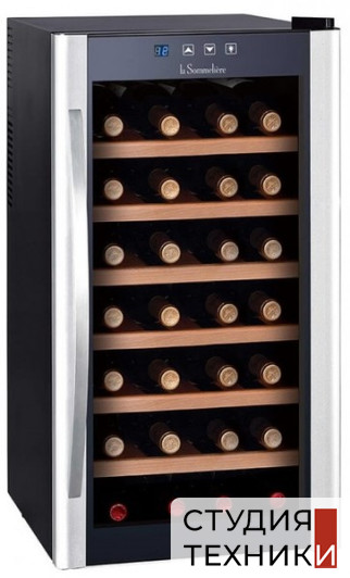 Общие характеристики:- Тип: отдельностоящий- Вид: однозонный- Количество дверей: 1 - Количество камер: 1- Вместимость бутылок (0.75 л): 28 шт- Цвет: нержавеющая сталь/черное стекло- Класс энергопотребления: В- Климатический класс: ST-Т (+16С до + 43С)- Уровень шума: 39 дБ- Потребляемая энергия в год: 203 кВт/год- Система охлаждения: компрессорная- Размеры (ВхШхГ): 51.5х64х14 см