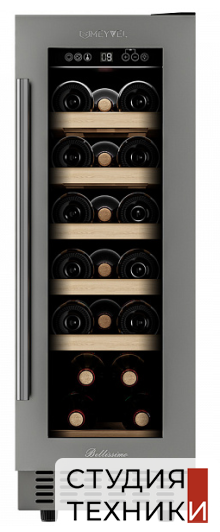 Винный шкаф MEYVEL MV18-KST1Общие характеристики:- Тип: отдельностоящий, встраиваемый- Вместимость, бут. 0,75л: 19 шт.- Количество температурных зон: 1- Диапазон регулировки температуры: 5-18 C- Цвет: черный/сталь- Уровень шума: 43 дБ- Класс энергетической эффективности: А- Годовое потребление энергии: 140 кВт- Размеры (ВхШхГ): 82х29.5х57.5 см Управление, функции:- Сенсорное управление- Электронный термостат- Цифровая индикация температуры- Голубая светодиодная подсветка