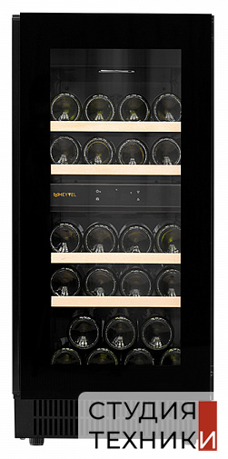 Винный шкаф MEYVEL MV23-KBT2Общие характеристики:- Тип: отдельностоящий, встраиваемый- Вместимость, бут. 0,75л: 23 шт.- Количество температурных зон: 2- Диапазон регулировки температуры: 5-18 C- Цвет: черный- Уровень шума: 43 дБ- Класс энергетической эффективности: А- Размеры (ВхШхГ): 82х38х57.2 см Управление, функции:- Сенсорное управление- Электронный термостат- Цифровая индикация температуры- Голубая светодиодная подсветка