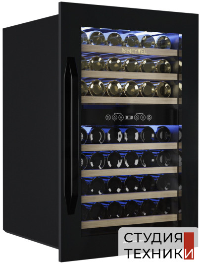 Винный шкаф MEYVEL MV42-KBB2Общие характеристики:- Тип: встраиваемый- Вместимость, бут. 0,75л: 42 шт- Общий объем: 110 л- Количество температурных зон: 2- Количество камер: 1- Диапазон регулировки температуры в верхней зоне: от +5 до +10С- Диапазон регулировки температуры в нижней зоне: от +10 до +18С- Диапазон влажности: 60-80%- Цвет: черный- Уровень шума: 45 дБ- Класс энергетической эффективности: А- Размеры (ВхШхГ): 45.6х59.4х56 см Управление, функции:- Сенсорное управление- Цифровой дисплей температуры- LED освещение
