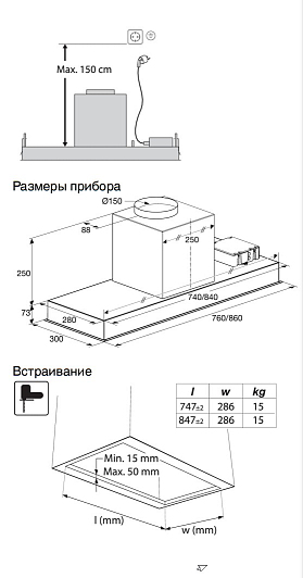 • Встраиваемая вытяжка в шкаф