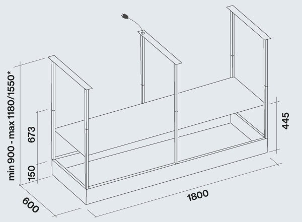 | Размеры (ВхШхГ): | 118-155x180x60 см. |