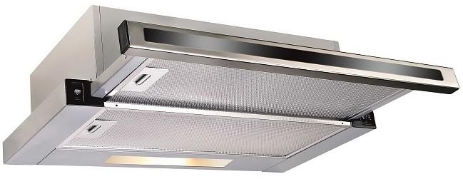 Общие характеристики:- Тип: вытяжка с выдвижным экраном- Монтаж: встраиваемая в шкаф- Режим работы: отвод/рециркуляция- Уровень шума: 58 дБ- Цвет: нержавеющая сталь/черный- Материал корпуса: нержавеющая сталь- Максимальная производительность: 600 м.куб/ч- Количество двигателей: 1- Потребляемая мощность: 0,185 кВт- Диаметр воздуховода: 120 мм- Размеры (ВхШхГ): 17.5х50х14.3-42.3 см- Вес:5,82 кг