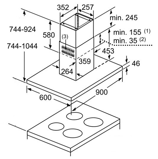 | Размеры (ВхШхГ): | 74.4-104.4x90x60 см. |