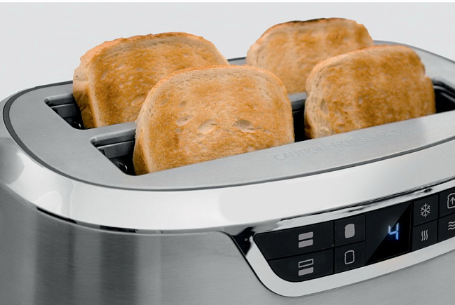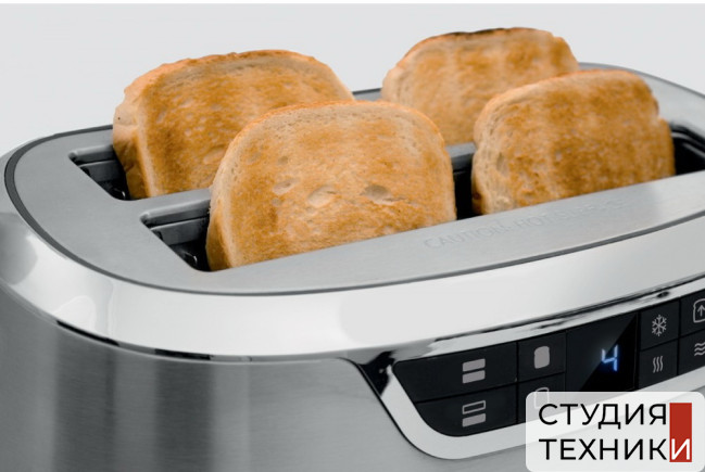 Технические характеристики:- Тип: тостер- Материал: нержавеющая сталь- Размеры (ВхШхГ): 22.5х39.5х20 см- Цвет: серебристый- Мощность: 1.34-1.6 кВт- Количество слотов: 2- Вместимость: 4 ломтика Управление/функции:- Управление: сенсорное/поворотный регулятор- Цифровой ЖК- дисплей- Регулировка степени прожарки- Функция размораживания- Функция подогрева- функция MotorLift (плавное поднятие тостов)- Таймер обратного отсчета