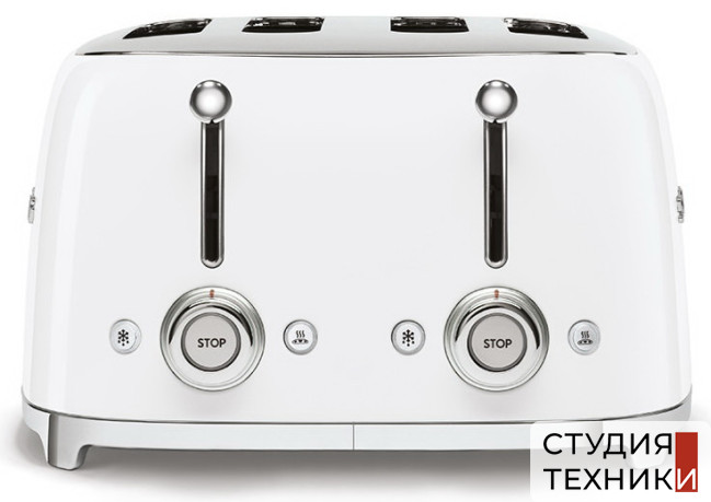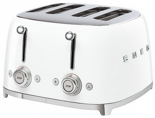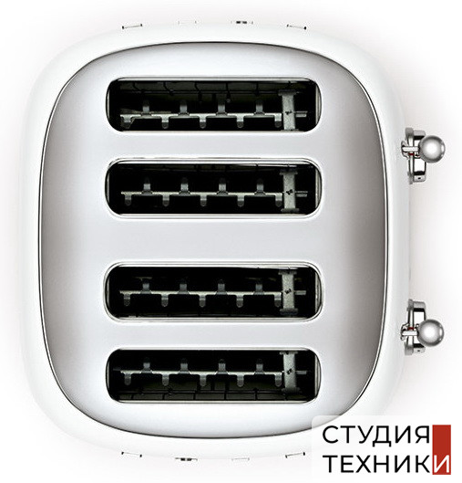 Общие характеристики:- Вид: на 4 тоста- Мощность: 2100 Вт - Количество отделений: 4 - Дизайн: ретро - Цвет: белый- Материал корпуса: нержавеющая сталь- Размеры (ВхШхГ): 33х30х20 см- Размеры отделений для тостов (ВхШхГ): 11х14.7х3.6 см