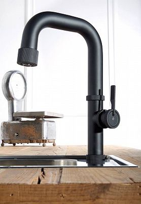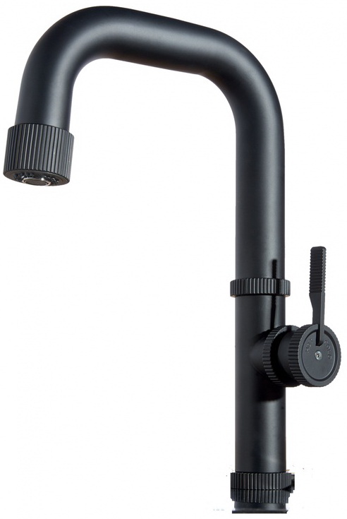 Общие характеристики:- Тип смесителя: однорычажный- Материал корпуса: латунь- Цвет: матовый черный- Излив: поворотный- Тип ручки: рычаг сбоку- Размер излива: (ВхД): 23.6х22.5 см