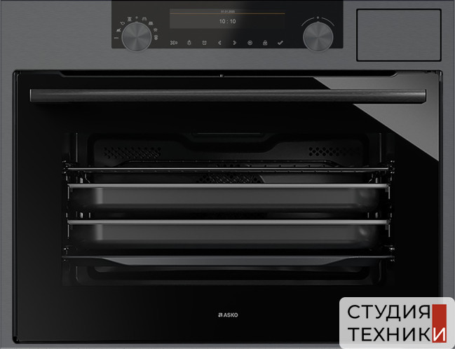 Общие характеристики:- Тип: электрический- Вид духовки: комбинированный духовой шкаф с функциями пара и СВЧ- Цвет: черная сталь- Цвет фурнитуры: черный- Объем: 50л- Количество режимов нагрева: 18- Количество авто программ: 143- Максимальная температура в духовке: 230 °С- Очистка: паровая AquaClean- Резервуар для воды: 1.3 л- Мощность подключения: 3 кВт- Размеры (ВхШхГ): 45.5x59.5x54.6 см- Размеры ниши (ВхШхГ): 45x56x55 см