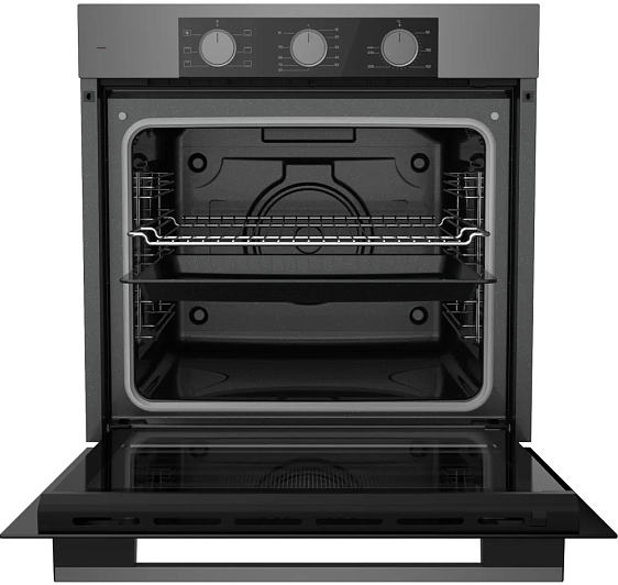 Общие характеристики:- Тип: электрический- Установка: независимая- Цвет: черный/графит- Цвет фурнитуры: графит- Материал рабочей камеры: эмаль- Объем духовки: 80 л- Очистка духовки: паровая- Количество уровней приготовления: 5- Количество режимов: 6- Класс энергопотребления: А- Мощность подключения: 2.5 кВт- Размеры (ВхШхГ): 59.5х59.5х56.7 см- Размеры ниши для встраивания (ВхШхГ): 60х56х55 см