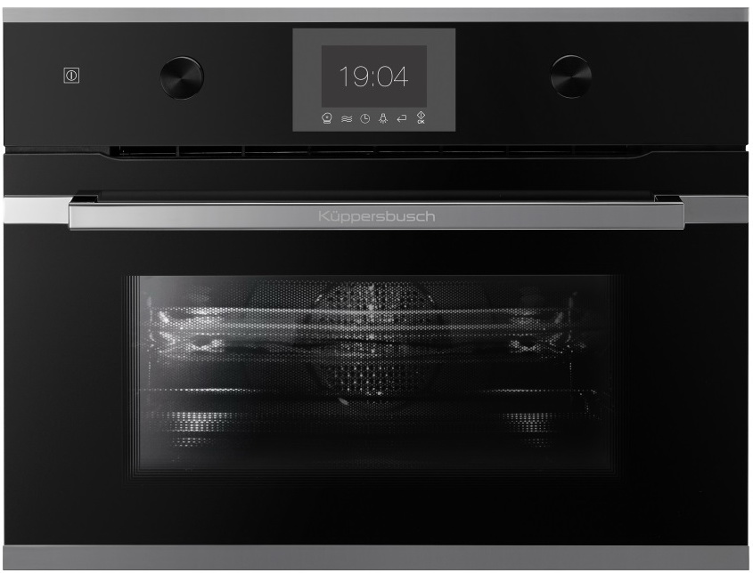 Компактный духовой шкаф с микроволнами Kuppersbusch CBM 6350.0 S3Общие характеристики:- Тип: электрический- Установка: независимая- Цвет: черное стекло- Цвет фурнитуры: Silver Chrome - Объем духовки: 43 л - Мощность подключения: 3,4 кВт- Мощность микроволн: 1000 Вт - Очистка: традиционная- Размеры (ВхШхГ): 45.5х59.5х55.9 см- Размеры ниши для встраивания (ВхШхГ): 45х56х55 см