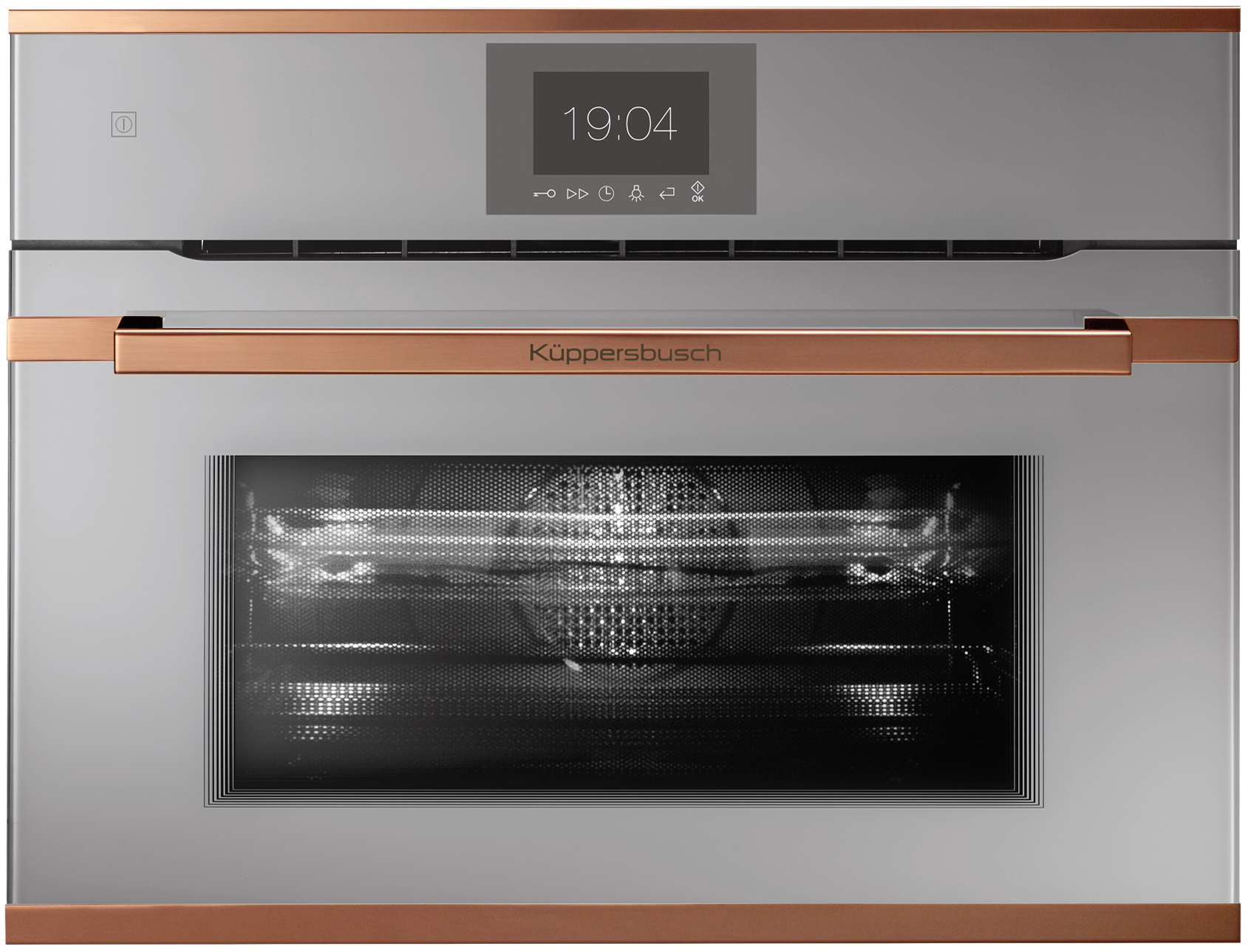Компактный духовой шкаф с микроволнами Kuppersbusch CBM 6550.0 G7Общие характеристики:- Тип: электрический- Установка: независимая- Цвет: серое стекло- Цвет фурнитуры: Copper- Объем духовки: 43 л - Мощность подключения: 3,4 кВт- Мощность микроволн: 1000 Вт - Очистка: традиционная- Размеры (ВхШхГ): 45.5х59.5х55.9 см- Размеры ниши для встраивания (ВхШхГ): 45х56х55 см
