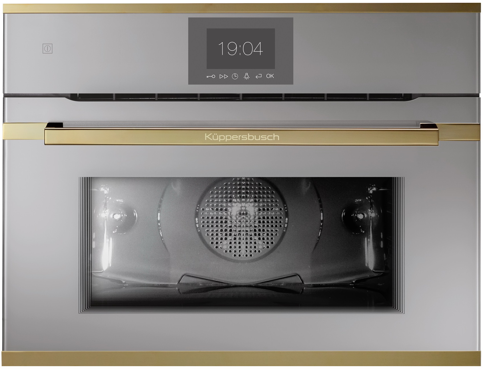Компактный духовой шкаф Kuppersbusch CBP 6550.0 G4 Общие характеристики:- Тип: электрический- Установка: независимая- Цвет: белое стекло- Цвет фурнитуры: Gold- Объем духовки: 44 л - Мощность подключения: 2.9 кВт- Очистка: пиролитическая (3 уровня)- Размеры (ВхШхГ): 45.5х59.5х55.9 см- Размеры ниши для встраивания (ВхШхГ): 45х56х55 см