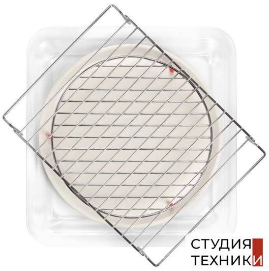 Принадлежности:- Вращающееся кольцо- Круглая подставка-решётка для гриля- Квадратная решётка для гриля- Стеклянный универсальный поддон- Круглый керамический поддон- Круглый эмалированный поддон