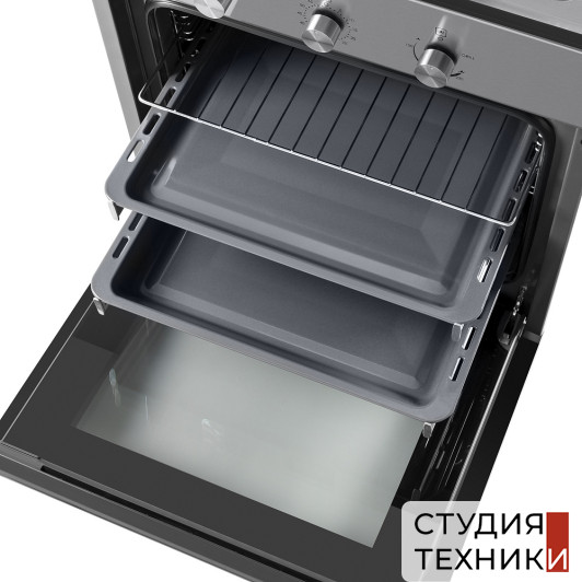 Общие характеристики:- Тип: газовый- Установка: независимая- Цвет: нержавеющая сталь/черный- Цвет фурнитуры: нержавеющая сталь- Объем духовки: 67 л- Очистка духовки: традиционная- Температурный диапазон: 50-250 С- Количество режимов работы: 4- Размеры (ВхШхГ): 59.8х59.5х56 см- Размеры ниши для встраивания (ВхШхГ): 58.5-59х55.6-59х56 см