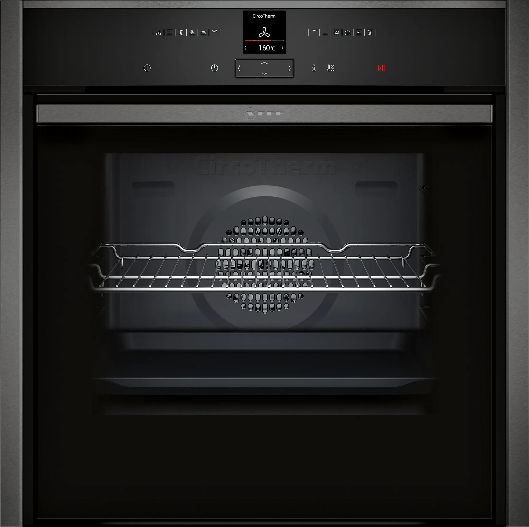 Общие характеристики:- Тип: электрический- Установка: независимая- Цвет: графит- Количество режимов нагрева: 12- Объем духовки: 71 л- Система очистки: пиролитическая- Класс энергопотребления: А+- Мощность подключения: 3,65 кВт- Размеры (ВхШхГ): 59.5х59.6х54.8 см- Размеры ниши для встраивания (ВхШхГ):58.5-59.5х56-56.8х55 см