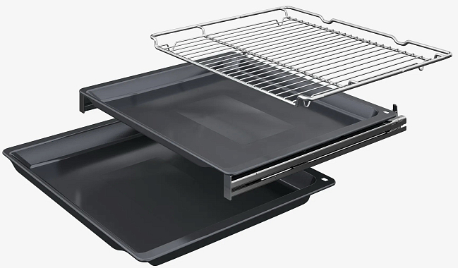 Принадлежности:- 1 эмалированный противень- 1 универсальный противень- 1 решетка- 1 большой поддон для приготовления на пару- 2 малых поддона для приготовления на пару- Термощуп