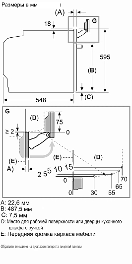 Особенности:- Ручка Slide – при открывании или закрывании дверцы всегда занимает наиболее удобное для руки положение- Дверца духовки Hide – полностью задвигается под духовую камеру- Амортизатор двери (мягкое закрывание)- Галогенное освещение