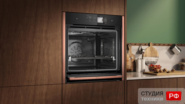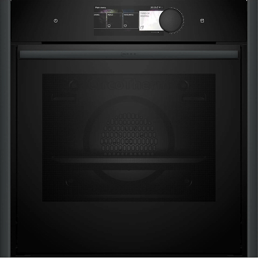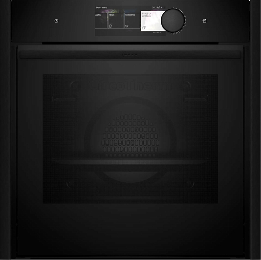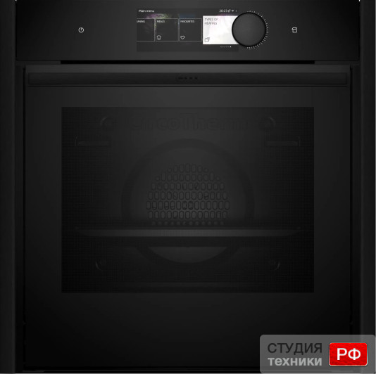 Управление, функции:- Сенсорная панель управления с поворотным регулятором- Цветной русскоязычный графический дисплей 6,8"- Регулировка температуры в диапазоне 40-275 С- Индикация фактической температуры в духовке- Предложение по установке температуры- Автоматический быстрый разогрев- Многофункциональные часы EasyClock с таймером и программированием начала/ окончания приготовления