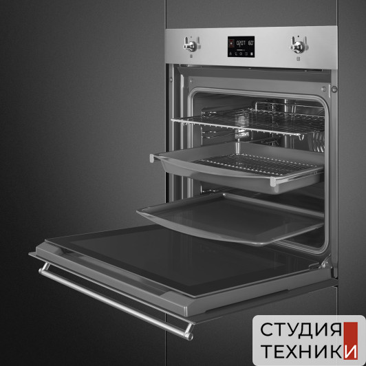 Принадлежности:- Глубокий эмалированный противень, 50 мм- Эмалированный противень, 20 мм- Решетка для противней- Решетка с ограничителем - 1- Телескопические направляющие с неполным выдвижением