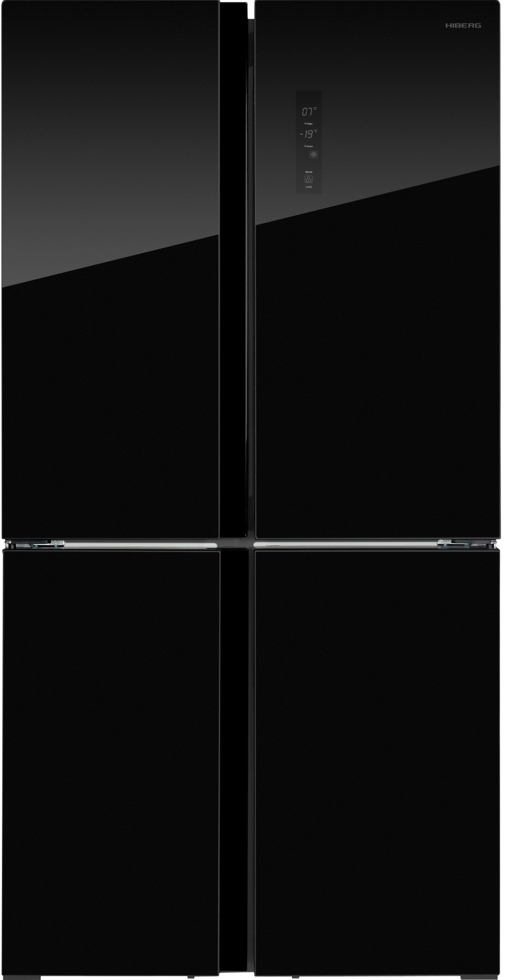 Холодильник Hiberg RFQ-555DX NFGB inverterОбщие характеристики:- Тип: отдельностоящий- Вид: холодильник с морозильной камерой- Количество камер: 2- Количество компрессоров: 1 - Количество дверей: 4- Разморозка холодильной камеры: No Frost- Разморозка морозильной камеры: No Frost- Общий объем холодильника: 545 л- Полезный объем холодильной камеры: 321 л- Полезный объем морозильной камеры: 144 л- Цвет: черный- Уровень шума: 42 дБ- Класс энергетической эффективности: A- Размеры (ВхШхГ): 183х91.1х63.6 см