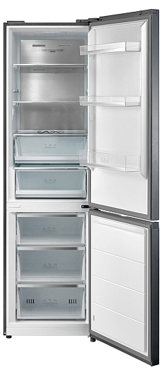 Общие характеристики:- Тип: отдельностоящий- Вид: холодильник с морозильной камерой- Количество камер: 2- Количество компрессоров: 1 - Разморозка холодильной камеры: No Frost- Разморозка морозильной камеры: No Frost- Общий объем холодильника: 360 л- Полезный объем холодильной камеры: 256 л- Полезный объем морозильной камеры: 104 л- Цвет: черная нержавеющая сталь- Уровень шума: 42 дБ- Класс энергетической эффективности: A+- Годовое потребление энергии: 409 кВтч/год- Размеры (ВхШхГ): 201.8х59.5х66 см