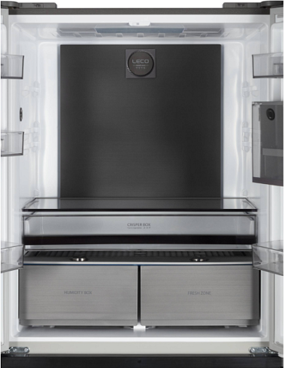 Холодильное отделение:- Задняя стенка Cold Metal- Освещение: Led- 2 полки из стекла- Количество полок на двери: 6 - Контейнеры для овощей и фруктов: 3- Зона свежести с изменяемым температурным режимом- Лоток для яиц