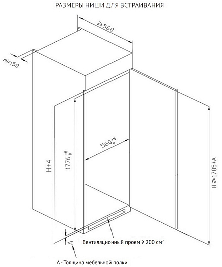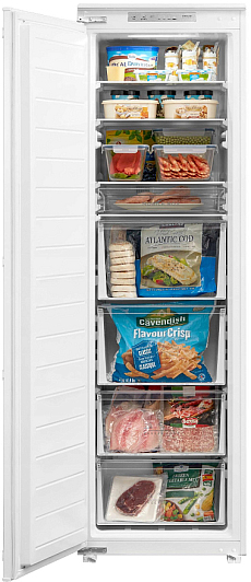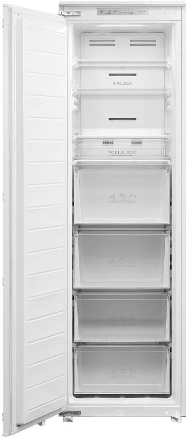 Общие характеристики:- Тип: встраиваемый- Вид: морозильник- Количество камер: 1- Количество компрессоров: 1 - Разморозка морозильной камеры: No Frost- Полезный объем морозильной камеры: 212 л- Цвет: белый - Уровень шума: 41 дБ- Класс энергетической эффективности: A+- Годовое потребление энергии: 236 кВтч/год- Размеры (ВхШхГ): 178.5х54х54.5 см- Размеры ниши для встраивания: 177х56х55 см