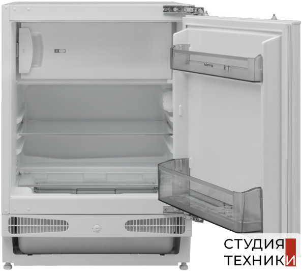 Общие характеристики:- Тип: встраиваемый- Вид: холодильник с морозильником- Количество камер: 2- Количество компрессоров: 1- Разморозка холодильной камеры: ручная- Разморозка морозильной камеры: ручная- Общий объём: 115 л- Полезный объем холодильной камеры: 93 л- Полезный объем морозильной камеры: 17- Цвет: белый - Уровень шума: 39 дБ- Класс энергетической эффективности: A+- Годовое потребление энергии: 171 кВтч/год- Мощность подключения: 123 Вт- Размеры (ВхШхГ): 81.8х59.5х54.8 см- Размеры ниши для встраивания: 82-89х60х55 см
