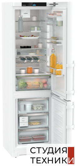 Холодильник Liebherr CNd 5753Общие характеристики:- Тип: отдельностоящий- Вид: холодильник с морозильником- Количество камер: 2- Количество компрессоров: 1- Разморозка холодильной камеры: автоматическая- Разморозка морозильной камеры: No Frost- Полезный объем холодильной камеры: 255 л- Полезный объем морозильной камеры: 94 л- Уровень шума: 36 дБ- Цвет: белый- Класс энергетической эффективности: А++- Размеры (ВхШхГ): 201.5х59.7х67.5 см Управление, функции:- Элементы управления: сенсорные- 2,4“ TFT-дисплей цветной, сенсорный и свайповый экран- Диапазон температур морозильной камеры от -15 °C до -26 °C- Диапазон регулировки температуры в холодильной камере от +3 °C до +9 °C- Система SuperFrost температура в морозильной камере быстро понижается до -32 °С, создавая таким образом «резерв холода», необходимый для замораживания продуктов при максимальном сохранении витаминов автоматическое отключение через 65 часов (макс.) - Автоматическая функция SuperСool температура в холодильной камере поддерживается на уровне + 2 С в течении 12 часов, что идеально подходит для быстрого охлаждения продуктов питания- Функция «Отпуск»Холодильное отделение:- Освещение: светодиодное потолочное- Циркуляционное охлаждение- 6 полки из закаленного стекла, из них 5 регулируемые по высоте, 1 разделяемая полка- Металлическая полка для бутылок - Отделение для бутылок: 1- Контейнер для фруктов и овощей: 1- Контейнер на частично выдвигаемых телескопических направляющих- Количество полок на двери для хранения консервов: 2- Лоток для яиц- Масленица- Фильтр из активированного угляМорозильная камера:- Время сохранения холода при отключении электроэнергии: 24 ч- Светодиодное освещение двери- Ледогенератор EasyTwist-Ice- Мощность замораживания: 16 кг/сутки- Контейнеры выдвижные: 3Дополнительная информация:- Сторона открывания двери: правая, перенавешиваемая- Угол открывания двери 115°- Доводчик двери SoftSystem- Ролики для транспортировки сзади- Возможность доукомплектовать холодильник SmartDeviceBox для системы умного домаБезопасность:- Сигнализация неисправности: акустическая и оптическая- Сигнализация неплотно закрытых дверей: акустическая и оптическая- Защита от детейСтрана изготовитель:- Болгария