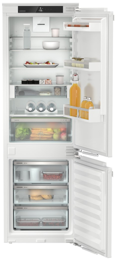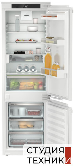 Общие характеристики:- Тип: встраиваемый- Вид: холодильник с морозильником- Количество камер: 2- Количество компрессоров: 1- Разморозка холодильной камеры: автоматическая- Разморозка морозильной камеры: No Frost- Общий объем холодильной камеры: 273 л- Полезный объем холодильной камеры: 251 л- Полезный объем морозильной камеры: 83 л- Уровень шума: 36 дБ- Цвет: белый- Класс энергетической эффективности: А++- Размеры (ВхШхГ): 177х55.9х54.6 см- Размеры ниши для встраивания (ВхШхГ): 177.2-178.8х56-57х55 см Управление, функции:- Элементы управления: сенсорные- Дисплей Touch display- Индикация температуры холодильной камеры- SmartDevice беспроводное устройство для управления со смартфона- SmartDeviceBox (возможность дооснащения)- NightMode: ночной режим настраивается через приложение- SabbathMode: выключено всё освещение холодильника, а также все звуковые сигналы, шумы и экран. Режим SabbathMode отключается через 80 часов- Режим «Отпуск»- CleaningMode: при чистке холодильника охлаждение выключается, а освещение остаётся включённым- PartyMode - активируются функция SuperCool для максимального производства льда- Система SuperCool, быстрое охлаждение (настраивается через приложение)- Быстрая заморозка SuperFrost (настраивается через приложение)- Циркуляционное охлаждение- Регулируемый диапазон температур холодильного отделения от +2 С до +9 С