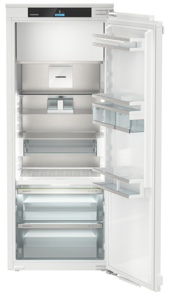 Общие характеристики:- Тип: встраиваемый- Вид: холодильник с морозильником- Количество камер: 2- Количество компрессоров: 1- Разморозка холодильной камеры: автоматическая- Общий объем холодильной камеры: 229 л- Полезный объем холодильной камеры: 205 л- Полезный объём морозильной камеры: 16 л- Уровень шума: 37 дБ- Цвет: белый- Класс энергетической эффективности: А++- Размеры (ВхШхГ): 139.5х55.9х54.6 см- Размеры ниши для встраивания (ВхШхГ): 139.7-141.3х56-57х55 см Управление, функции:- Элементы управления: сенсорные- Дисплей Touch &Swipe display- Индикация температуры холодильной камеры- SmartDevice беспроводное устройство для управления со смартфона- SmartDeviceBox (возможность дооснащения)- NightMode: ночной режим настраивается через приложение- SabbathMode: выключено всё освещение холодильника, а также все звуковые сигналы, шумы и экран. Режим SabbathMode отключается через 80 часов- Режим «Отпуск»- CleaningMode: при чистке холодильника охлаждение выключается, а освещение остаётся включённым- PartyMode - активируются функция SuperCool для максимального производства льда- Система SuperCool, быстрое охлаждение (настраивается через приложение)- Циркуляционное охлаждение- Регулируемый диапазон температур холодильного отделения от +3 С до +9 С